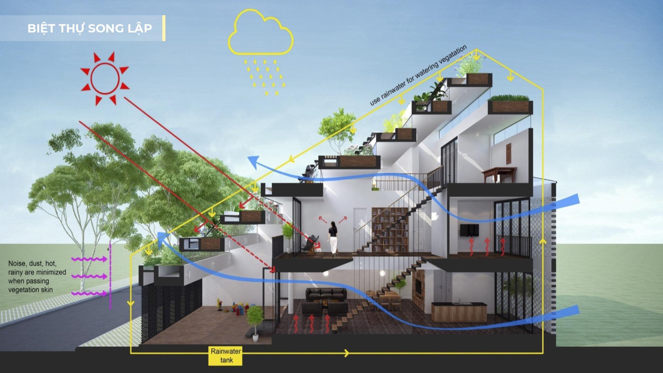 Tất cả các căn biệt thự tại đây đều được quy hoạch diện tích dành cho cây xanh và sân vườn tuyệt đẹp. Khu biệt thự song lập tại dự án được thiết kế đồng bộ và hiện đại với các cụm tiện ích riêng biệt như: công viên trung tâm, vườn thực vật, khu vui chơi giải trí.