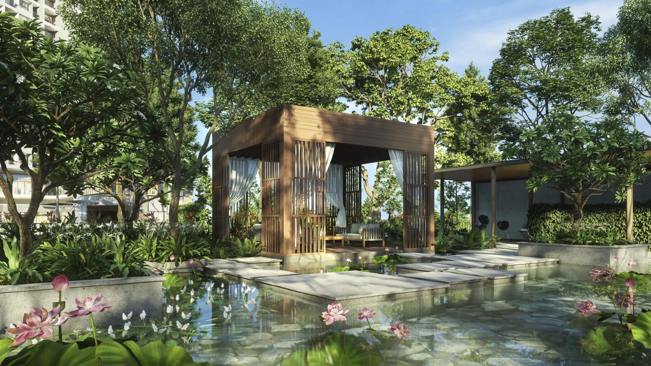 Bước chân vào dự án, cư dân sẽ được chiêm ngưỡng khung cảnh nên thơ với hồ nước lấp lánh, những luống hoa muôn màu khoe sắc và hàng liễu rũ soi bóng xuống mặt nước. Mỗi góc nhỏ trong khu vườn đều mang đậm dấu ấn nghệ thuật của Monet, mang lại cho du khách cảm giác như lạc vào thế giới hội họa đầy màu sắc.